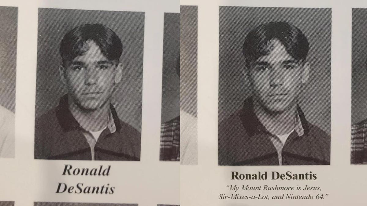 Have you seen that high school yearbook quote from Ron DeSantis on social media? It’s been spreading on Twitter this week reading, “My Mount Rushmore is Jesus, Sir-Mixes-a-Lot, and Nintendo 64.” But it’s completely fake.
