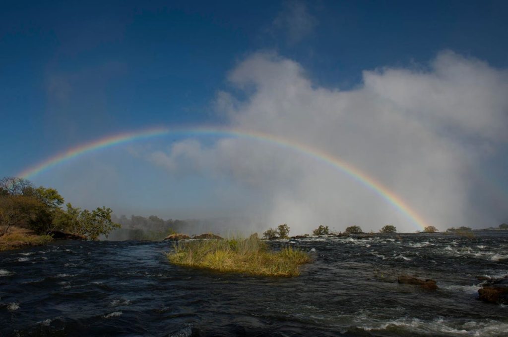 Speaking of reflection, I will start with the science of rainbow formation. The National Weather Service (NWS) website has an accessible explanation. It says, “As light enters the raindrop, it is refracted (the path of the light is bent to a different angle), and some of the light is reflected by the internal, curved, mirror-like surface of the raindrop, and finally is refracted back out the raindrop toward the observer.” Raindrops (or even spray from a hose or waterfall) are somewhat circular shaped, which results in a circular reflection. However, the Earth typically prevents us from seing the full circular entity. If the sun is lower on the horizon, you typically see more of the rainbow.